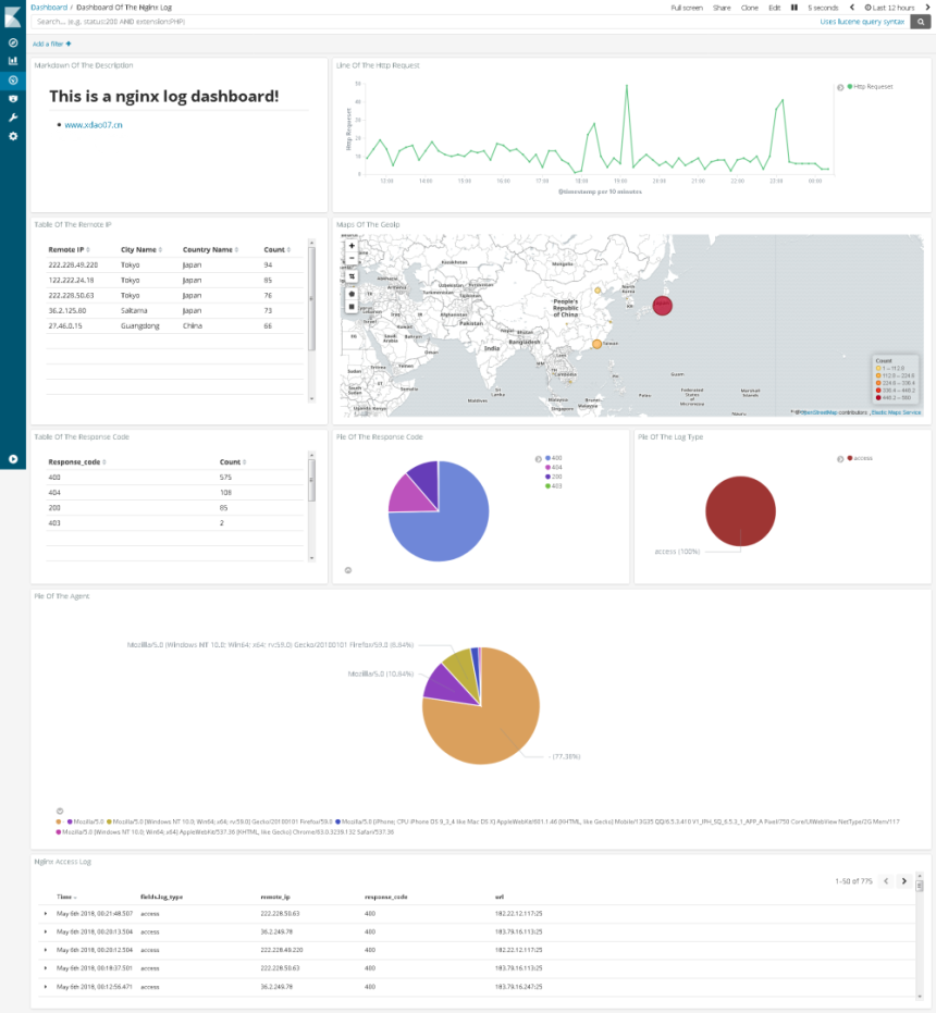 利用开源的Elastic Stack技术栈中的Elasticsearch+Logstash+Kibana+Beats构建日志收集分析系统,对Nginx日志进行收集分析并以图形状态展示。