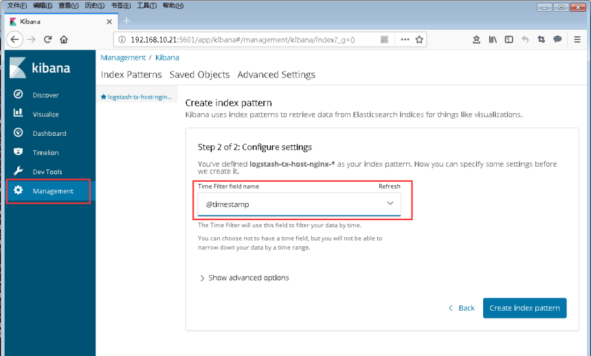 output段,配置了elasticsearch的连接信息,将最终数据输出到elasticseach中。index参数用于指定索引,后面在Kibana中会要用到。