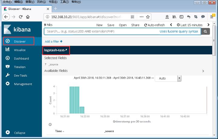 11、通过浏览器访问Kibana,检查整个项目是否工作正常