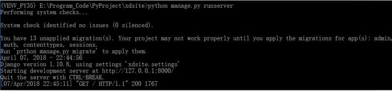 (VENV_PY35) E:\Program_Code\PyProject\xdsite>python manage.py runserver