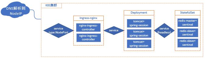应用层+服务层:Deployment清单创建多副本tomcat,项目使用spring-session配合redis实现Session共享