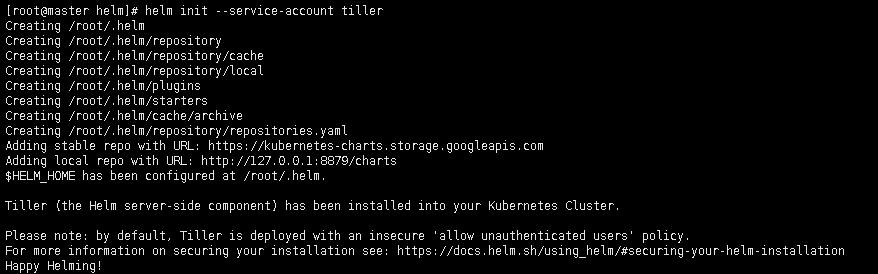 [root@master helm]# helm init --service-account tiller # 默认使用~/.kube/config配置文件作为调用k8s Api Server的context文件