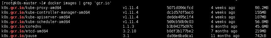 [root@k8s-master ~]# docker images | grep 'gcr.io' # 查看拉取的镜像是否正确