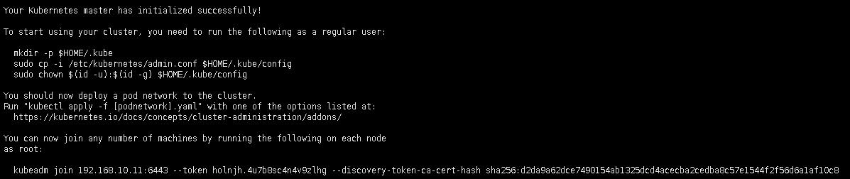 kubeadm join 192.168.10.11:6443 --token holnjh.4u7b8sc4n4v9zlhg --discovery-token-ca-cert-hash sha256:d2da9a62dce7490154ab1325dcd4acecba2cedba8c57e1544f2f56d6a1af10c8