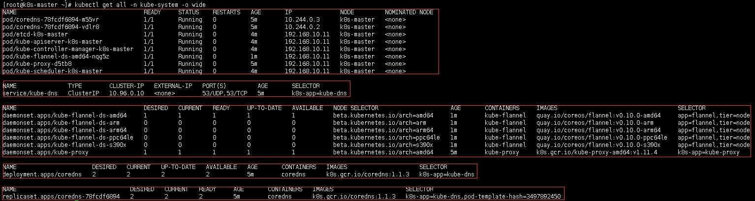 k8s-apiserver, k8s-scheduler, k8s-control-manager, kubectl, flannel, coreDns |