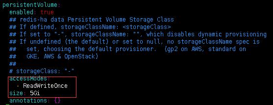 2、修改模板参数值文件values.yaml,指定pv卷大小为5Gi,以适用之前创建的pv