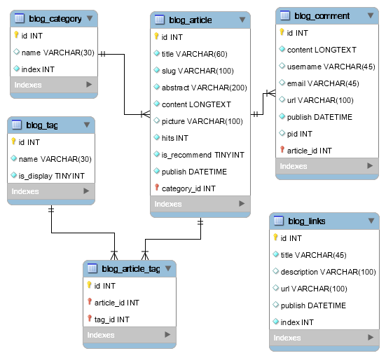 Django个人博客数据库表 |
