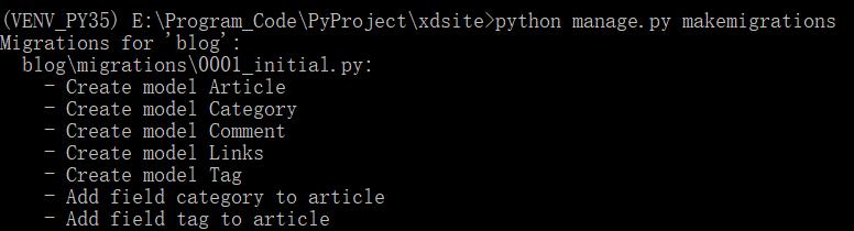 (VENV_PY35) E:\Program_Code\PyProject\xdsite>python manage.py makemigrations
