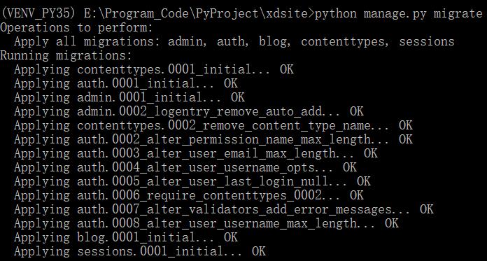 (VENV_PY35) E:\Program_Code\PyProject\xdsite>python manage.py migrate