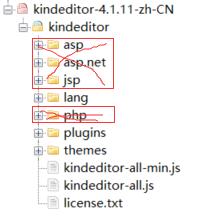 4.2将kindeditor-4.1.11-zh-CN.zip解包删除其它编程语言环境下才需要使用的目录(红色框内删除)