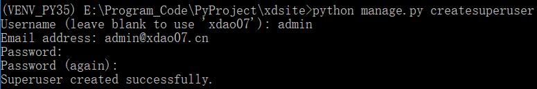 (VENV_PY35) E:\Program_Code\PyProject\xdsite>python manage.py createsuperuser
